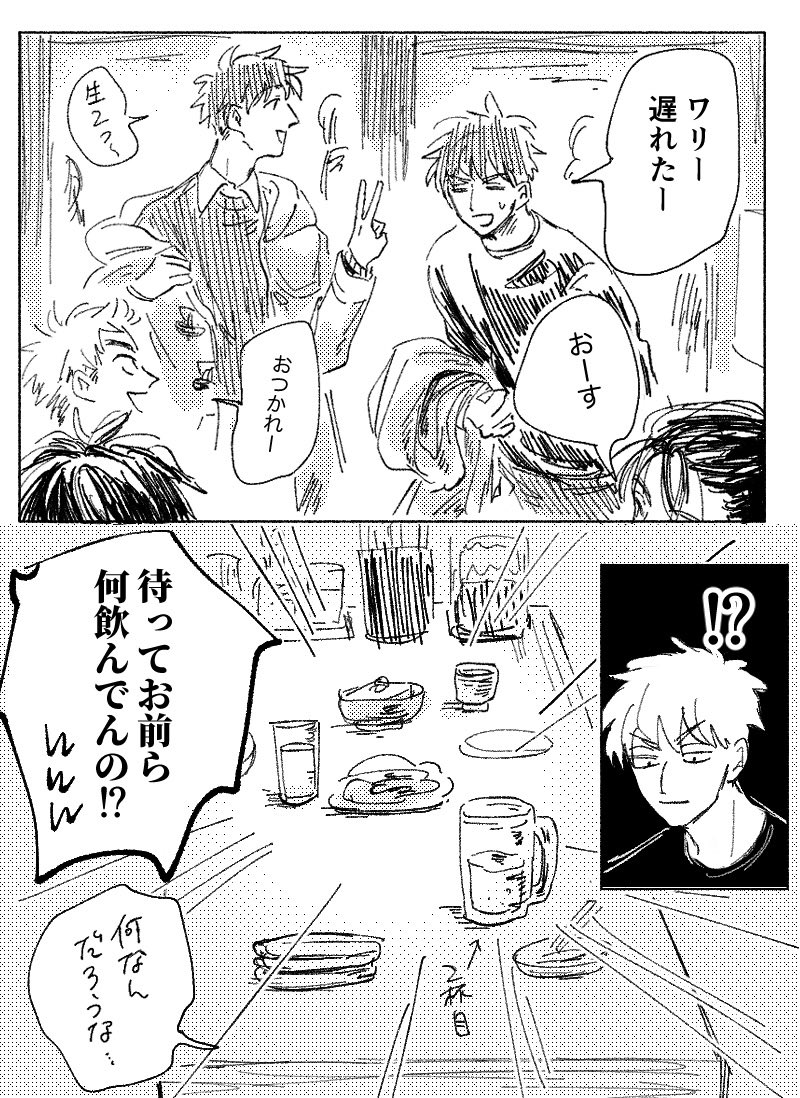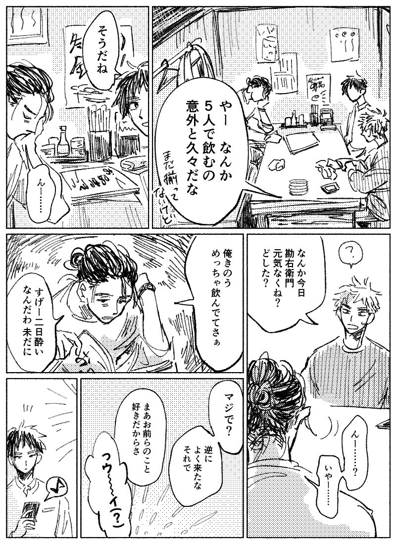 現パロ五年が居酒屋にいるまんがです