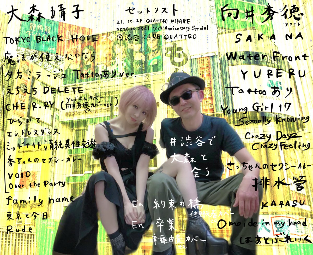 渋谷で向井秀徳さんとライブ、ありがとうございました。最高なので11/4までの配信是非。セトリは画像。