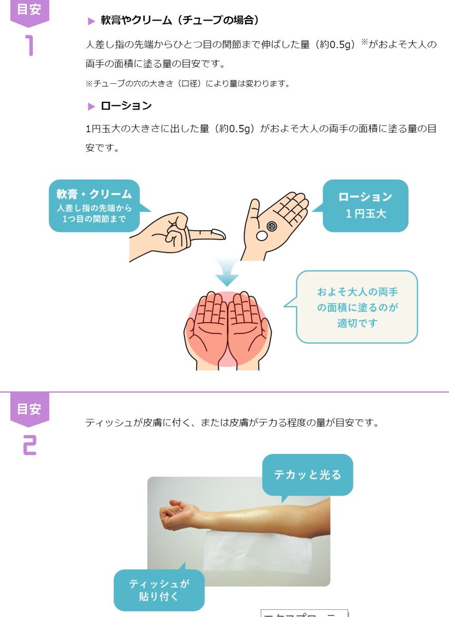 冬は保湿剤に関するご相談をよく受けます。まずは「もっと知ろう!乾燥肌」というサイトを見ていただくのがオススメです。ヒルドイドで有名なマルホが運営しているサイトで、「保湿剤の塗り方動画」「保湿剤の適切な塗布量」など、簡潔にまとまっています☺
