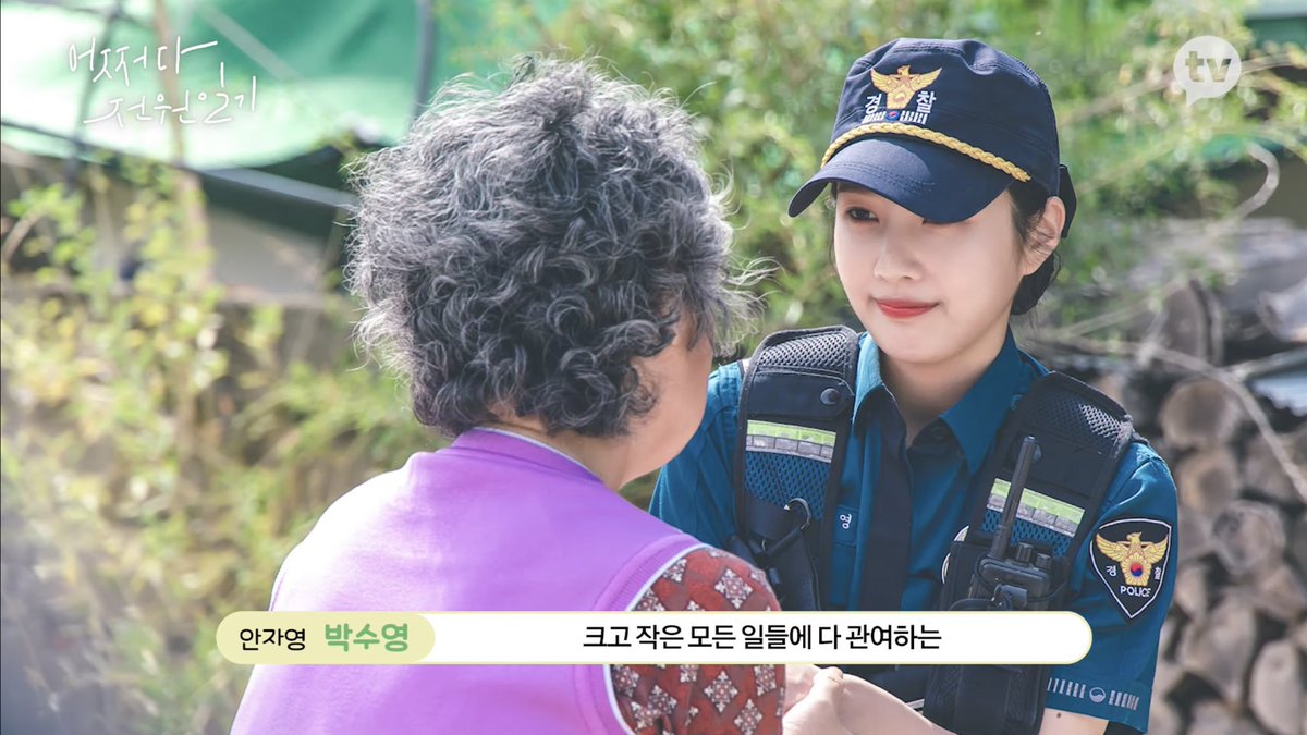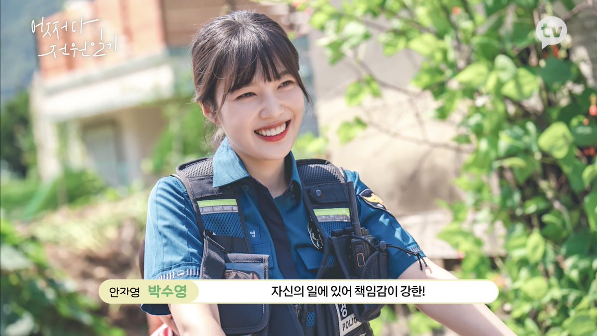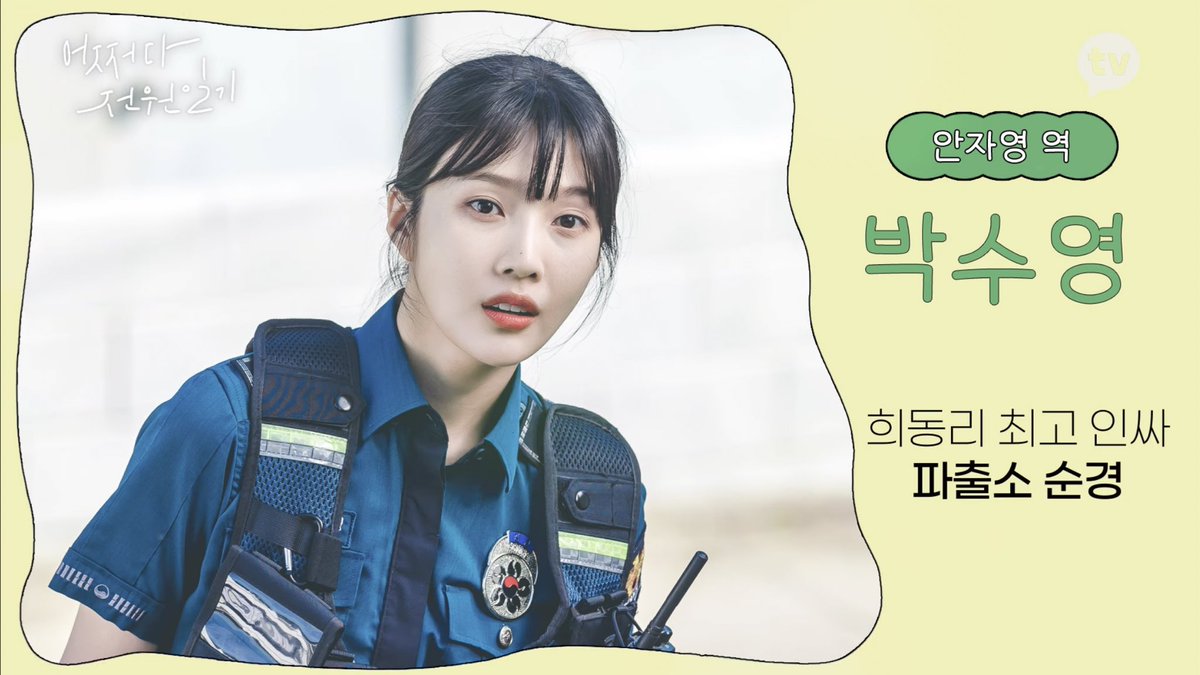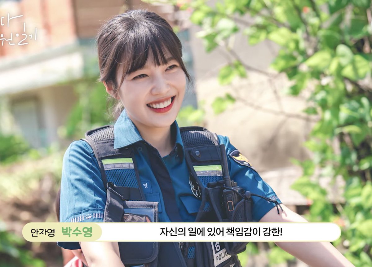 Our first look of Actress Park Sooyoung as Police Officer Ahn Jayoung during the filming of Kakao TV’s upcoming webdrama ‘Once Upon A Small Town' 💚🎬👮🏻