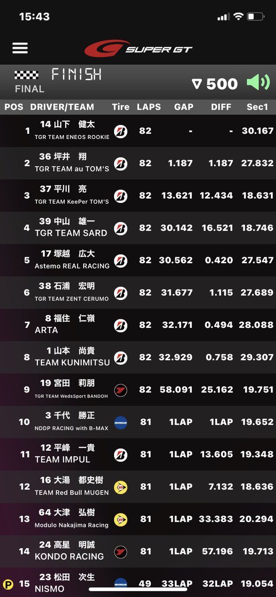 #supergt 最終戦もてぎ 決勝結果📣