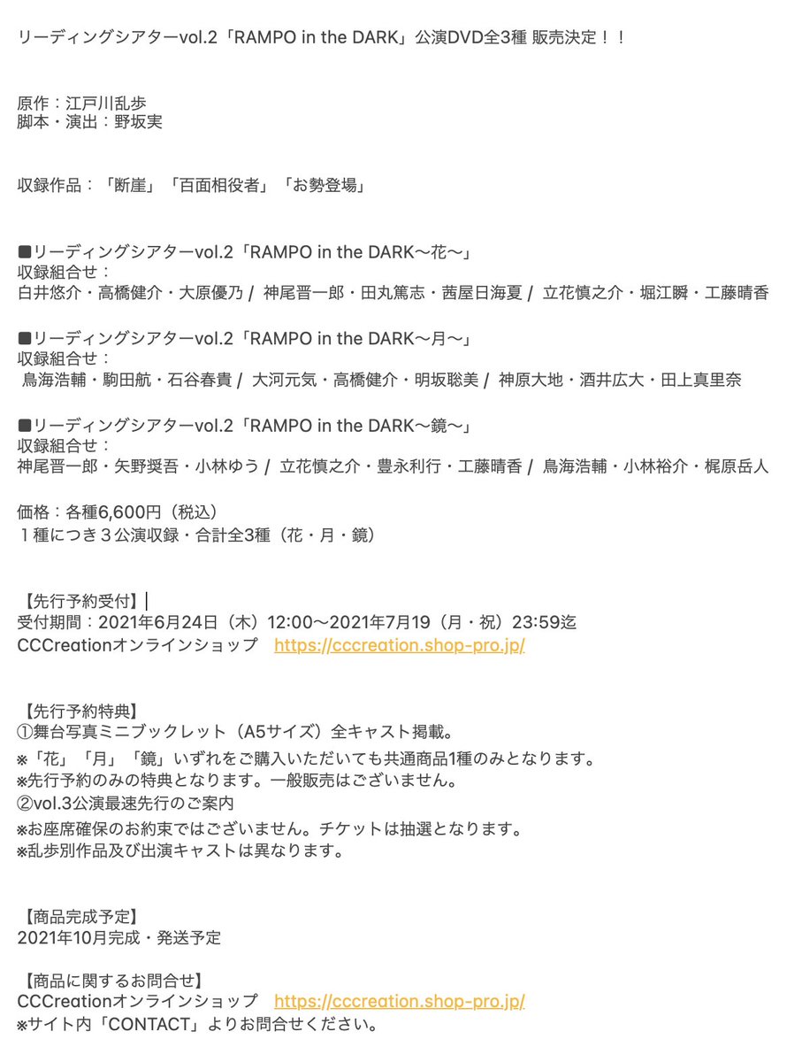 公演詳細 cccreation.co.jp/stage/rampo-in…