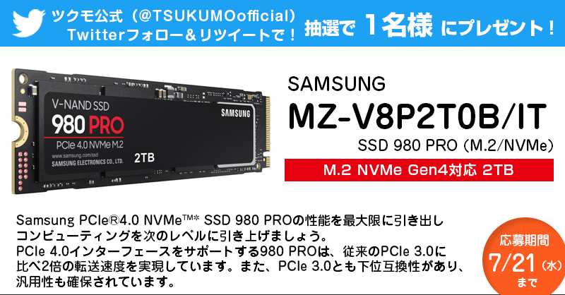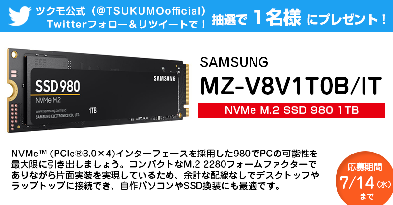 応募方法:ツクモ公式(@TSUKUMOofficial)をフォロー/RT