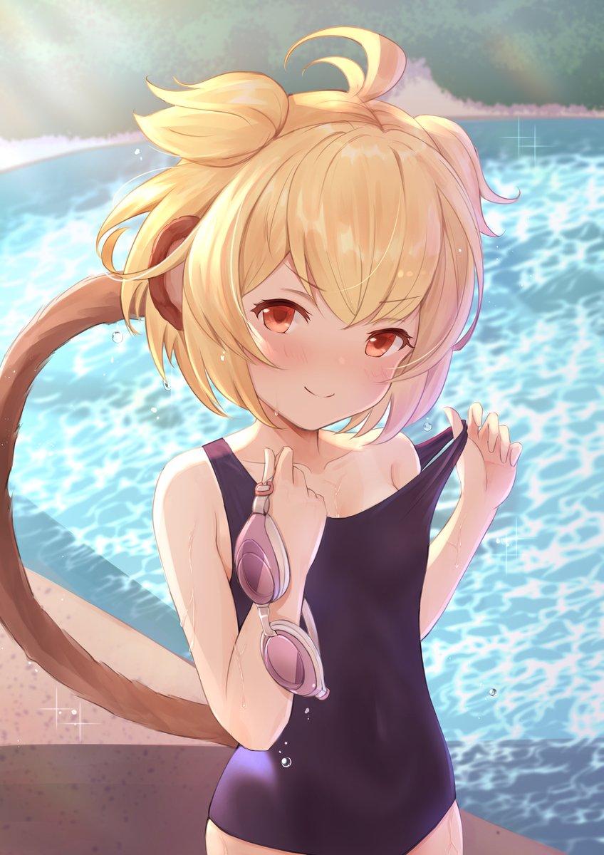 団員に吹き込まれて日焼け跡見せに来たアンチラちゃん