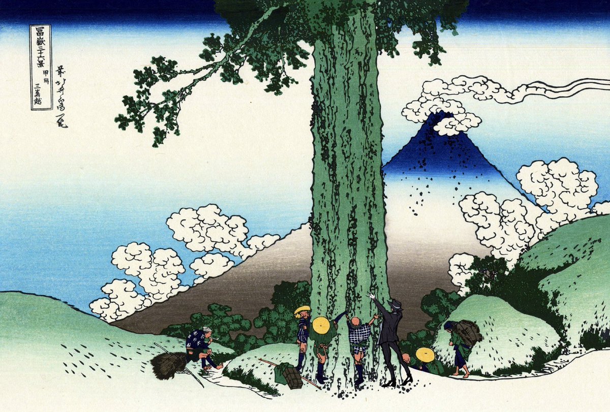 ジェイドくんの解釈の進展によりちょっと改変しました 「山を愛する会のメンバーが増えて嬉しいジェイド・リーチくん」 ↓ 「日本の山を守る会から良木を差し押さえるジェイド・リーチくん」 富嶽三十六景 甲州三島越