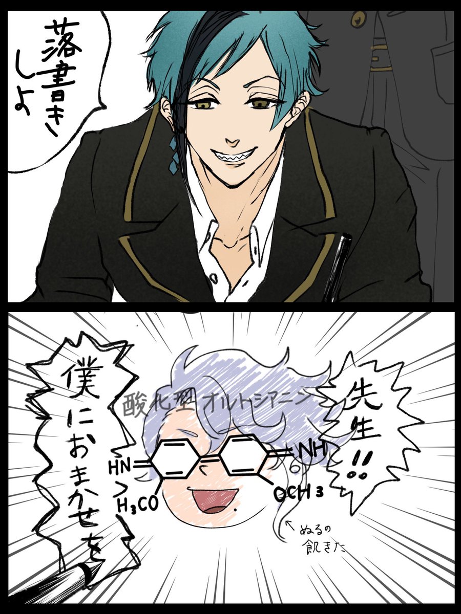 天文学者のモデルと前に描いた南海先生&地理学者のモデルは同一人物なので、肥前くんと南海先生を重ねられるレイアウトにもしてます。