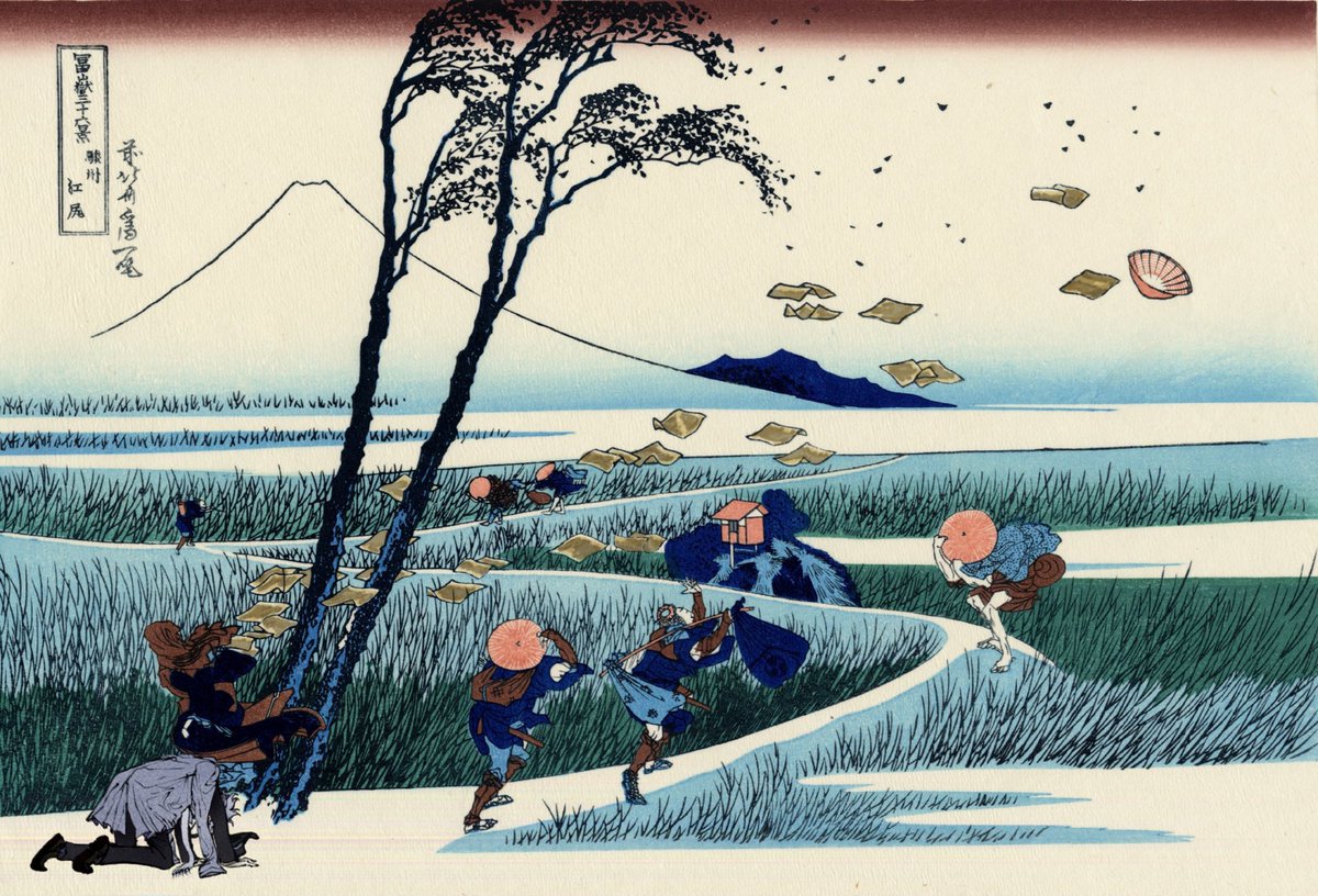 金の契約書が吹き飛ばされるアズール・アーシェングロットくん 富嶽三十六景 駿州江㞍 (*コラ パロ)