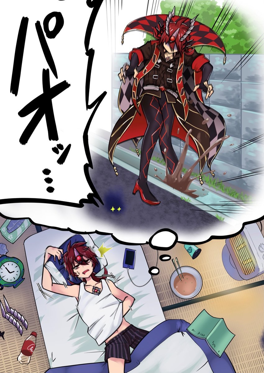 出先でコンタクトを落としたデスピアの凶劇とそれを踏まないように気遣う深淵の獣アルベル