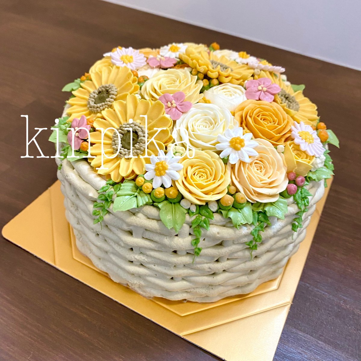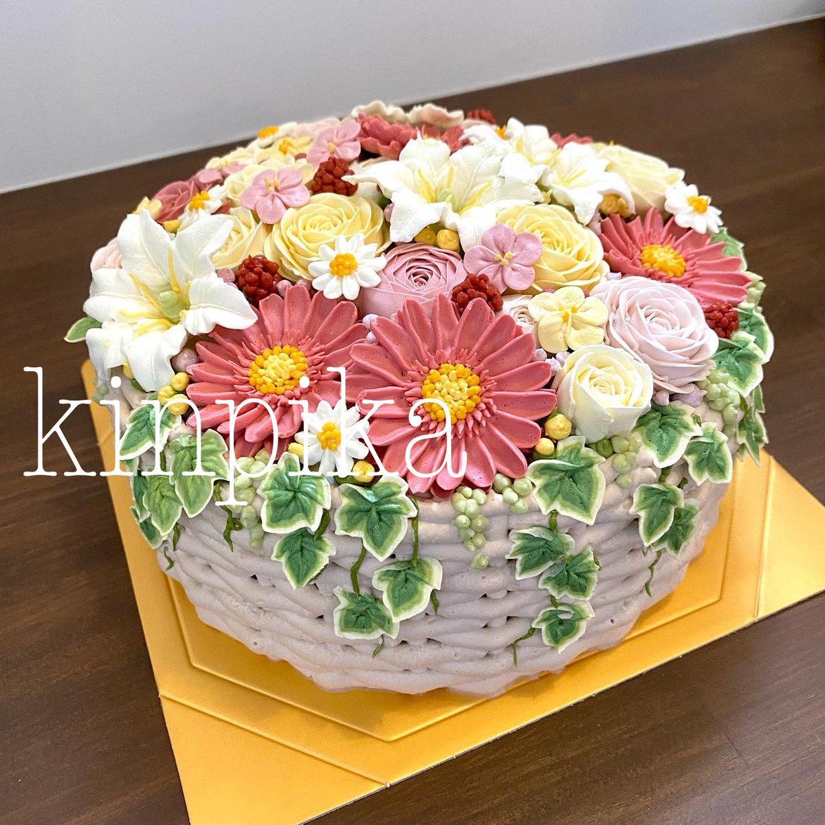 シンデレラカラーでご注文いただいた カゴのアレンジなケーキ。 かごをあみあみ絞っていくのがとってもたのしい♫
