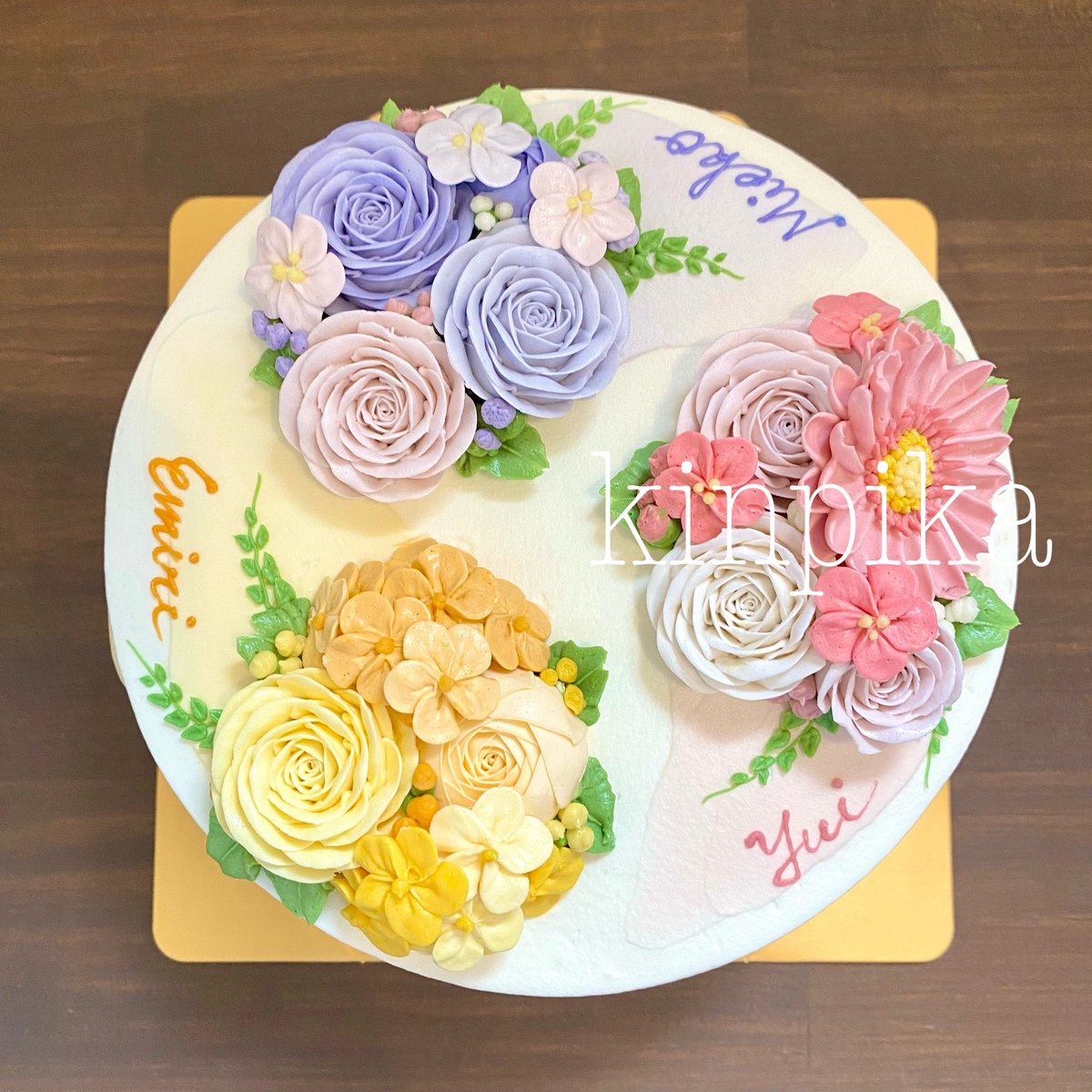 友人のお母さんから 簡単なイラストと共にご注文いただきました。 3人合同のお誕生日祝いだそうです! 台風は今どうなっているのでしょうか。 安曇野は今日もとても暑いので お受け取りの方は保冷のご協力をよろしくお願い致します。