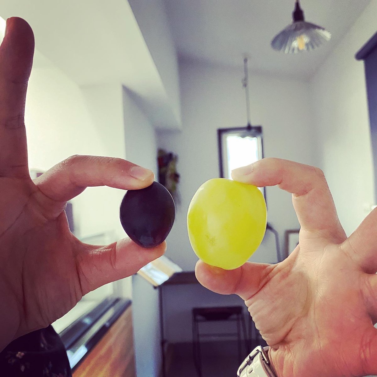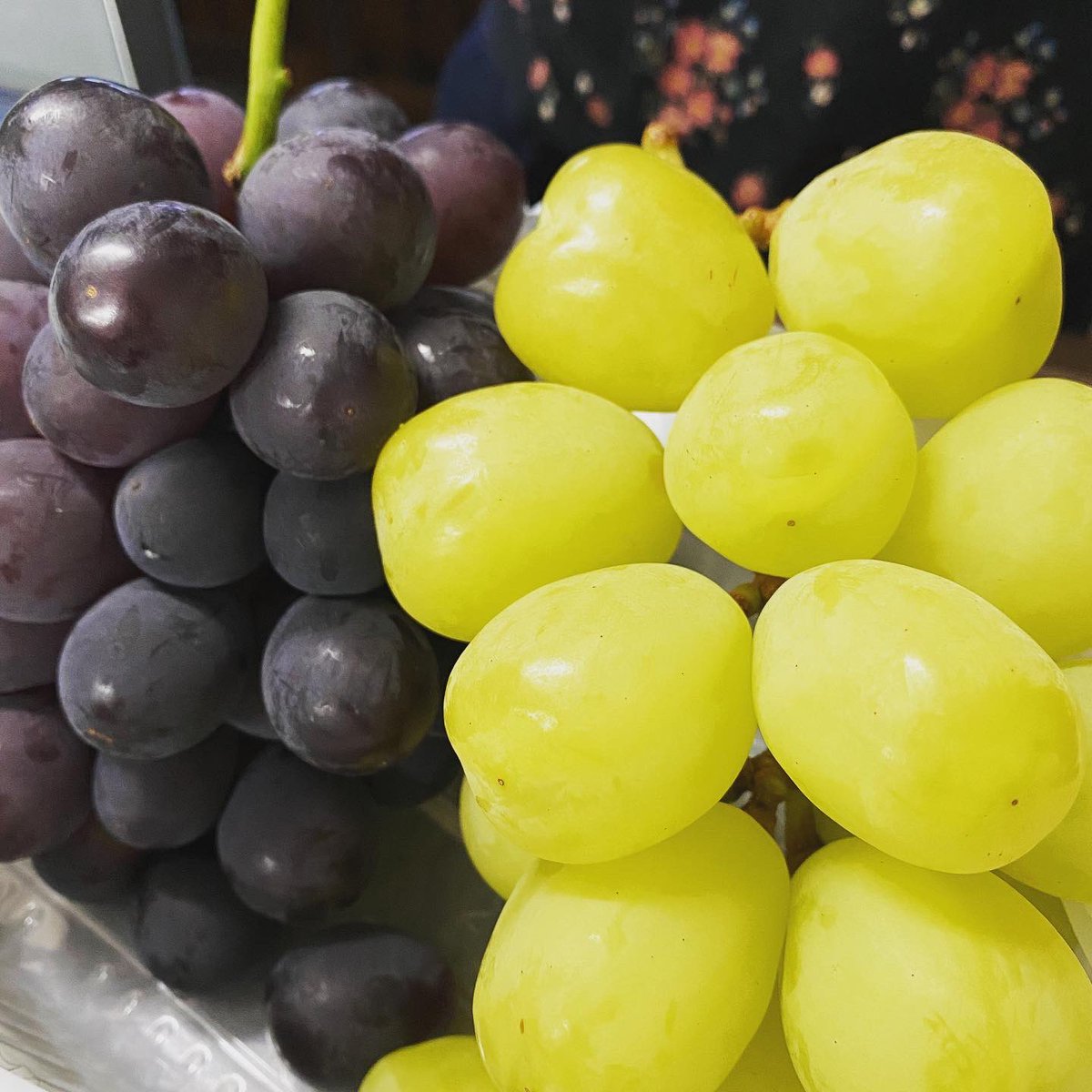 友人からの差し入れ。 巨大なぶどう(雄宝)と巨峰です。