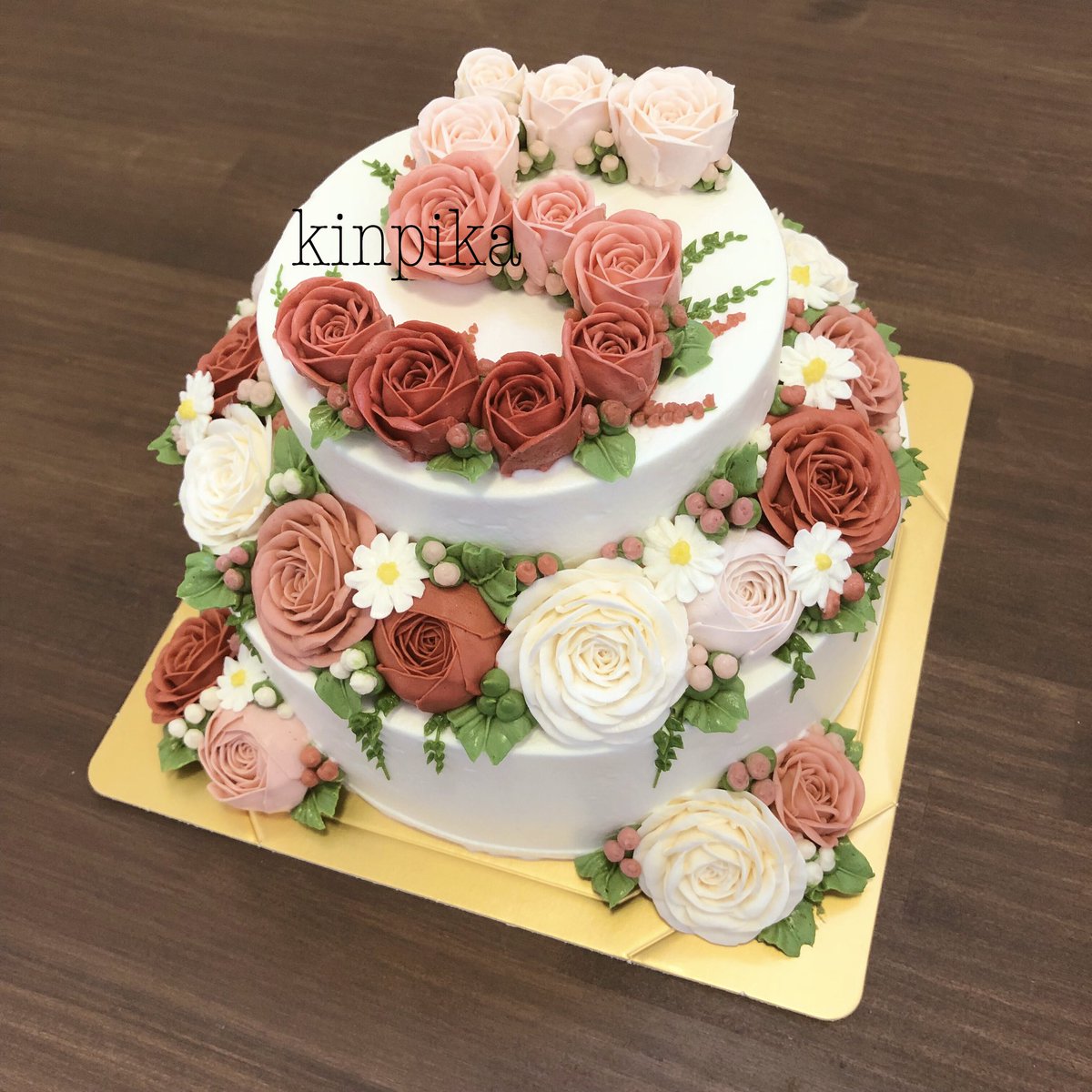 ケーキにお花を咲かせております。