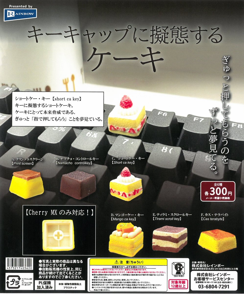 7月のプレゼントキャンペーン第122弾は、ショートケー・キーというダジャレ…「キーキャップに擬態するケーキ」全6種セットを抽選で2名様にプレゼントします!応募条件はこのアカウントをフォロー&リツイートしてください!続きと詳細は↓