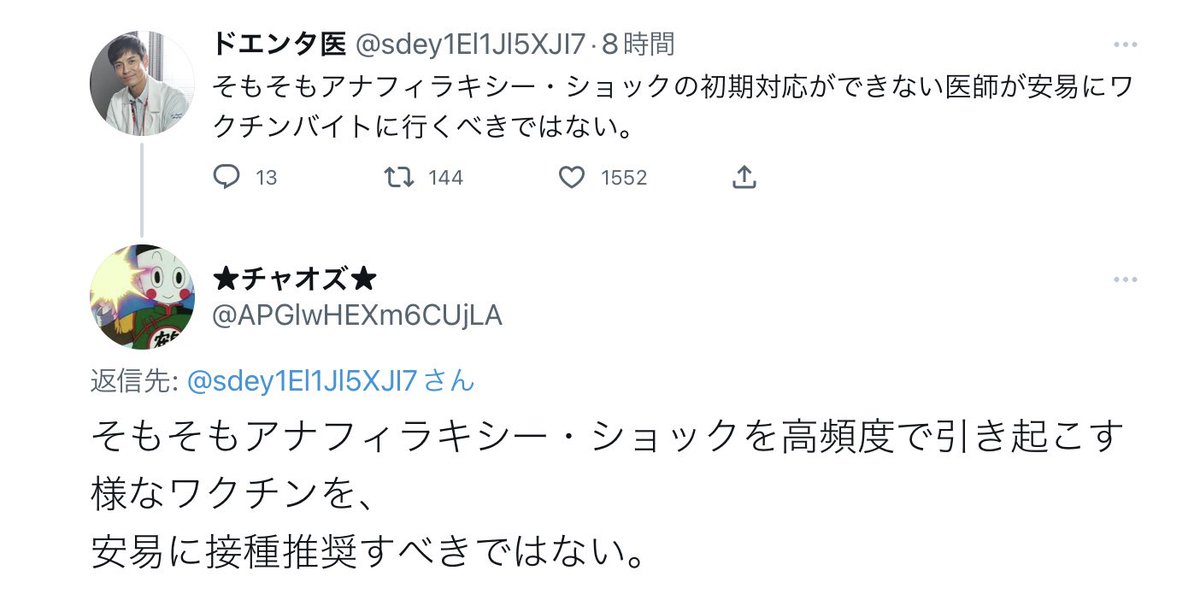 そもそもアナフィラキシー・ショックの初期対応ができない医師が安易にワクチンバイトに行くべきではない。