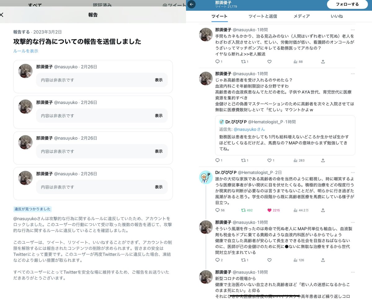 高齢者の受け入れを断れだとか、老人医療を一律に医者のマスターベーションだなどと侮辱してくる頭おかしいジャーナリストが遂に制裁をくらっていた。通報した甲斐があった。ご愁傷様です。