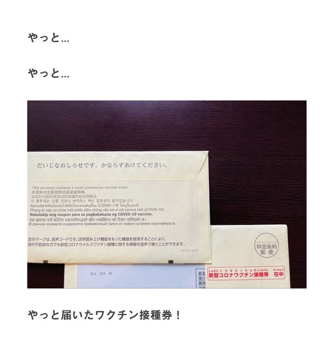 やっと届いたワクチン接種券!