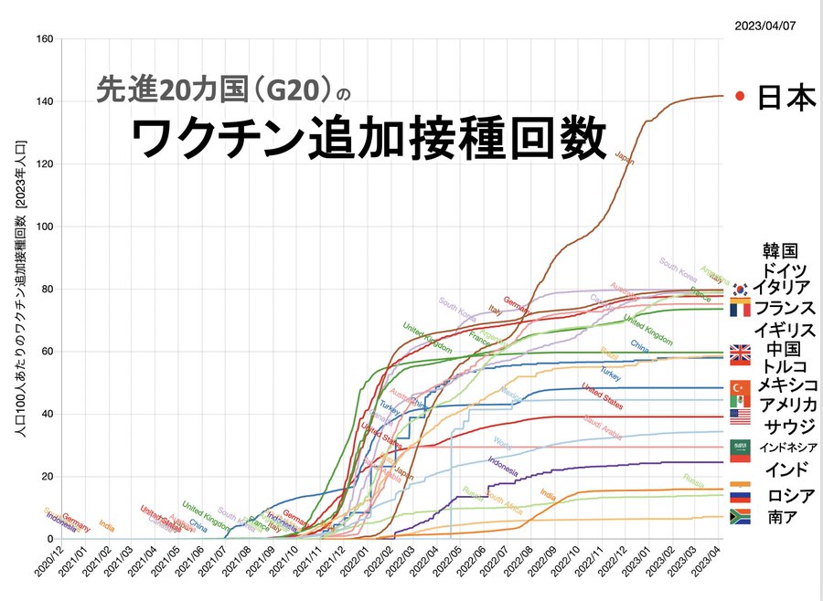 日本の追加接種数は世界的に異常です