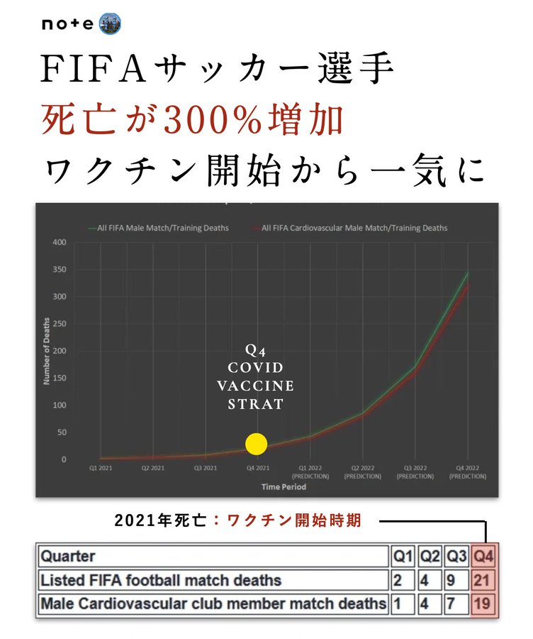 もしコロナで超過死亡が増えているのなら亡くなるのは高齢者が中心で、サッカー選手の死亡率が急上昇することなどあり得ません