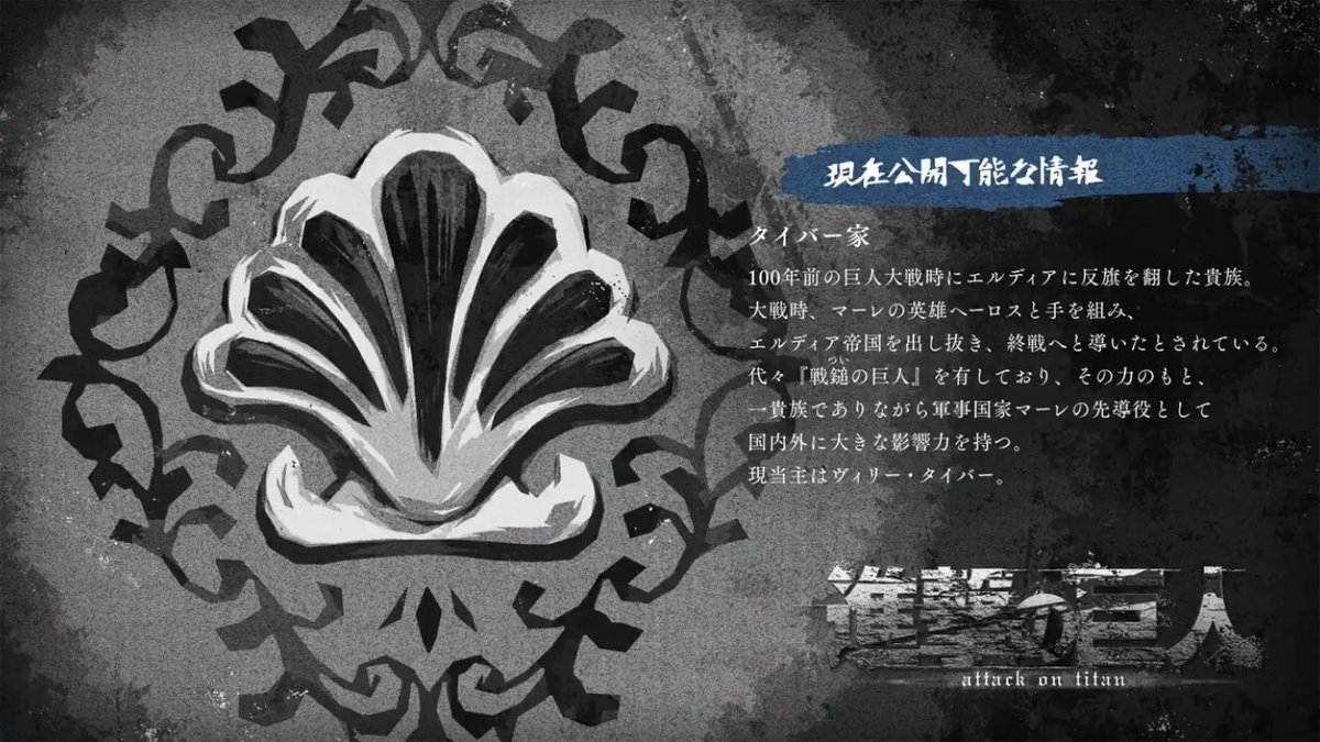 エルディアとマーレの戦争の場面にタイバー家の家紋出てきたね!