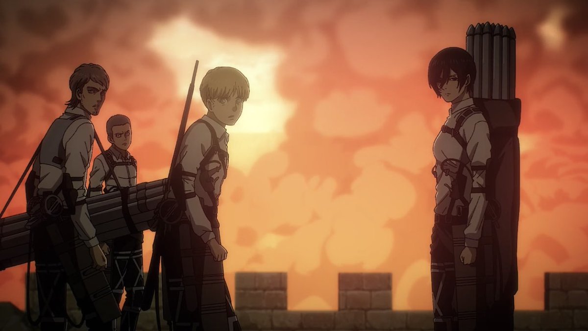 ミカサが、「リヴァイ"兵士長"とハンジ"団長"はどうしたの?」ってフロックに訊くの、「私たちの上官はお前じゃねぇぞ」って暗に伝えてる感じがして良い。