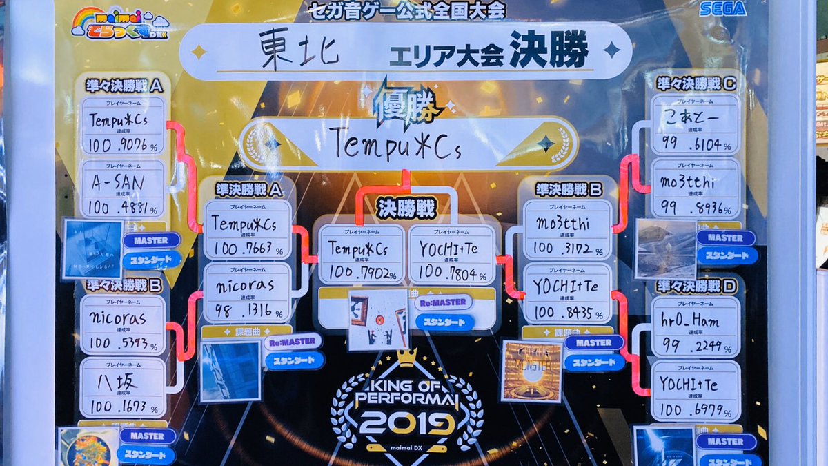 東北エリア大会優勝は超超超接戦を制した「てんぷら」!!オンライン予選から圧倒的な実力を示したYICHI+Teと競ったのはまさかの予選と同じ楽曲「ガラテラの螺旋」のRe:MASTER !本当に凄かった!!本当におめでとう!!幕張で会おう!!!!