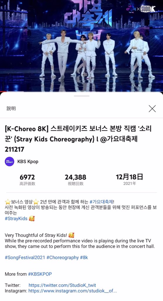 事前収録された映像が放送される間、現場にいらっしゃる観客の方々のために素敵なパフォーマンスを見せてくれた」