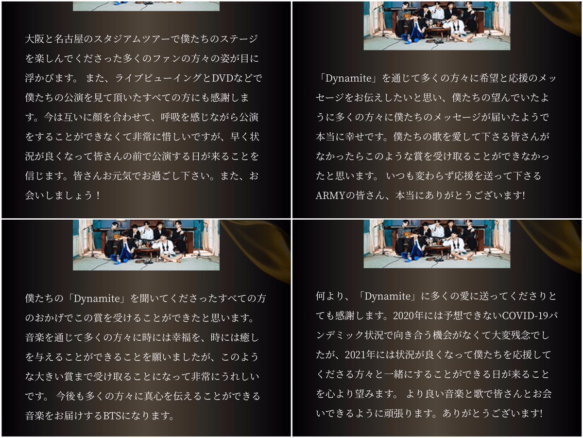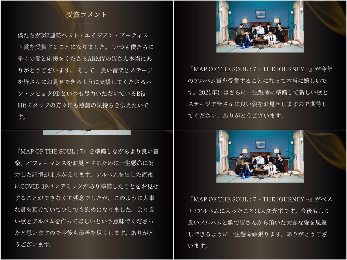 ことができる魔法を皆さんが掛けて下さりこの瞬間だけで充分だと思った、そんな風にアミに包み隠さず話してくれたナムジュン。全く性格や考え方が違うテヒョンとナムジュンだからこそ、お互いに良い影響を与え合う素敵な関係を築けているんだろうなと感じる大好きなエピソード。