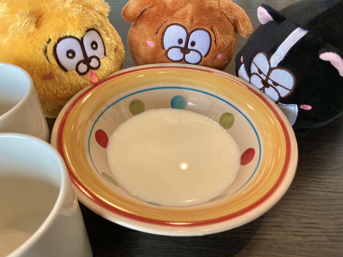みんなでぎゅうにゅうをのんだら、おさらがすぐにからっぽになりました。 松犬たちもおかわりがしたそうみたいでした。 いっしょに、おかあさんにおねがいをしようとおもいました。