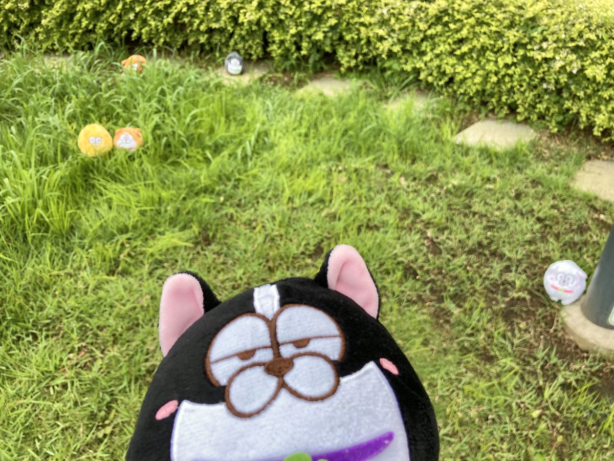 こうえんのしばふで松犬をみつけました! きょうは、なにしてあそぶのかな。