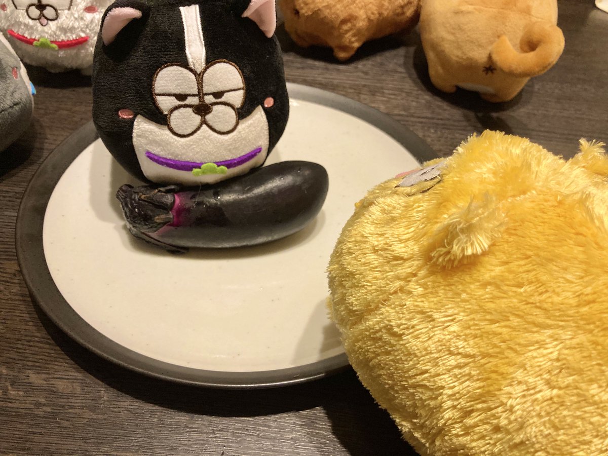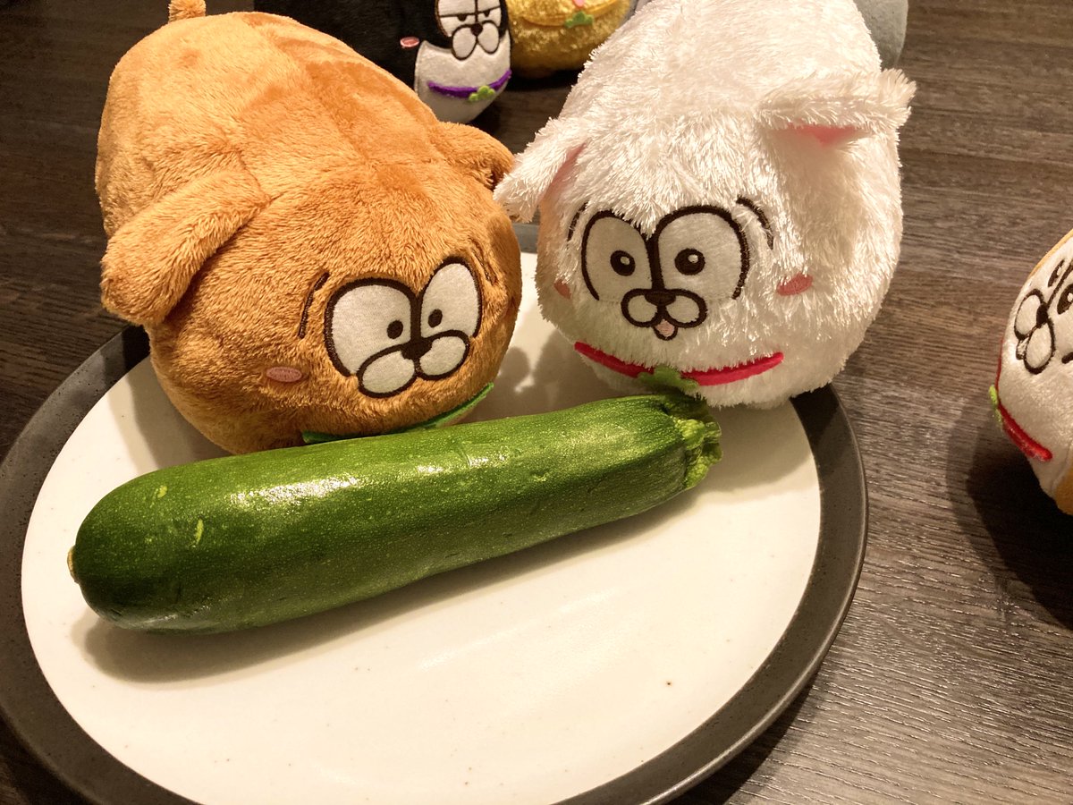 おやさいと松犬です。 なすがぼすとんのくびわみたいだなっておもいました。 ぽめらにあんが、くぎづけでした。