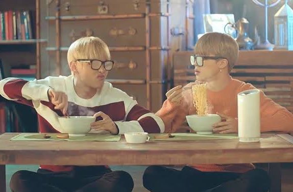 น้องแทเล่นกับพี่โฮป ทำเหมือนว่าฟีลแบบเปิดตัวซุปเปอร์สตาร์ไรงี้ พอเปิดประตูปุ๊บคนที่เดินเข้ามาไม่ใช่พี่โฮป แต่เป็นพี่จีมินจ่ะ เดินเข้ามาแบบง่วงๆงงๆ5555555555555555555555555555555