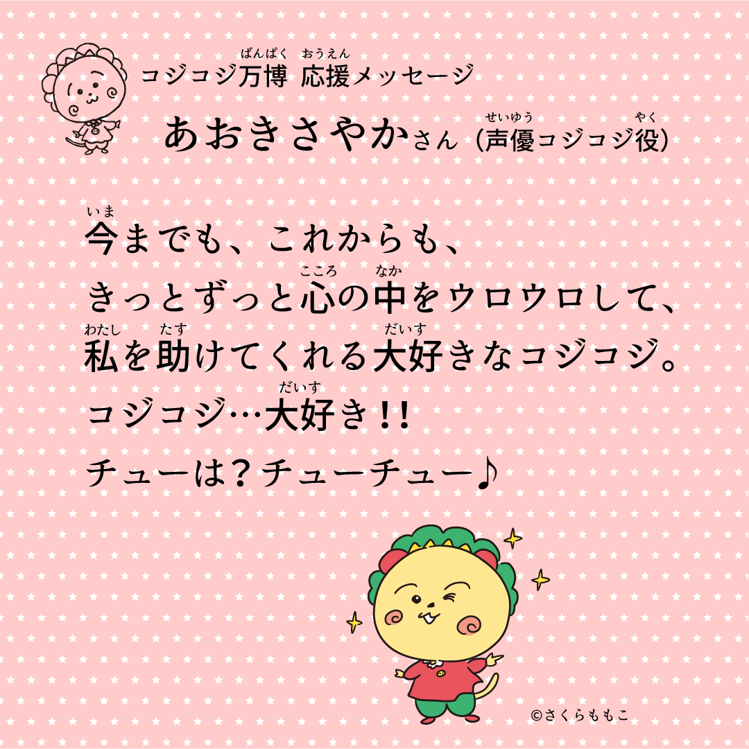 アニメ「コジコジ」のコジコジ役声優のあおきさやかさん @sayaka_aoki1019 から、応援メッセージが届きました!