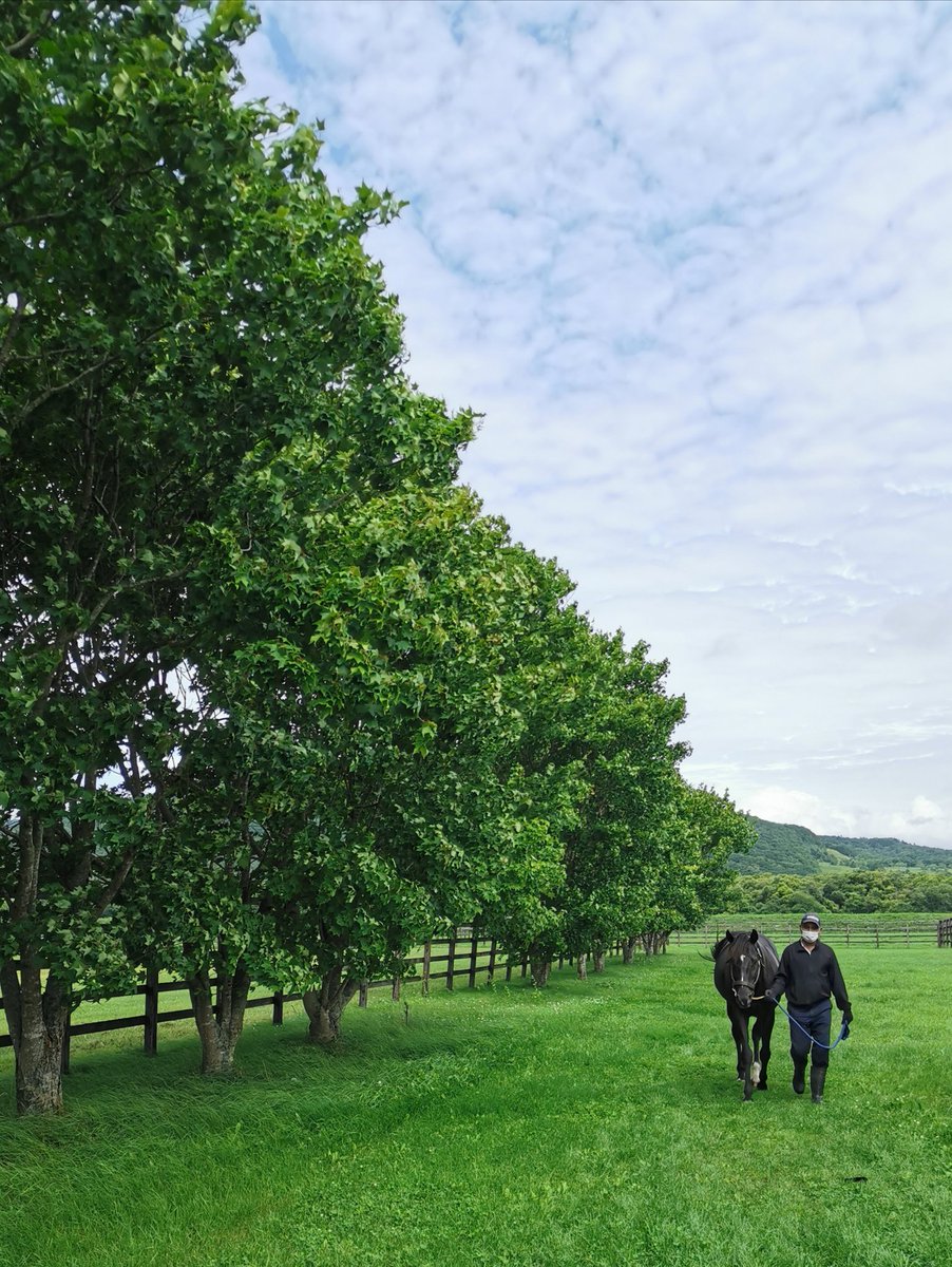 本日より #オウケンブルースリ はイーストスタッドを退厩し、うらかわ優駿ビレッジAERUにて余生を過ごすこととなりました。