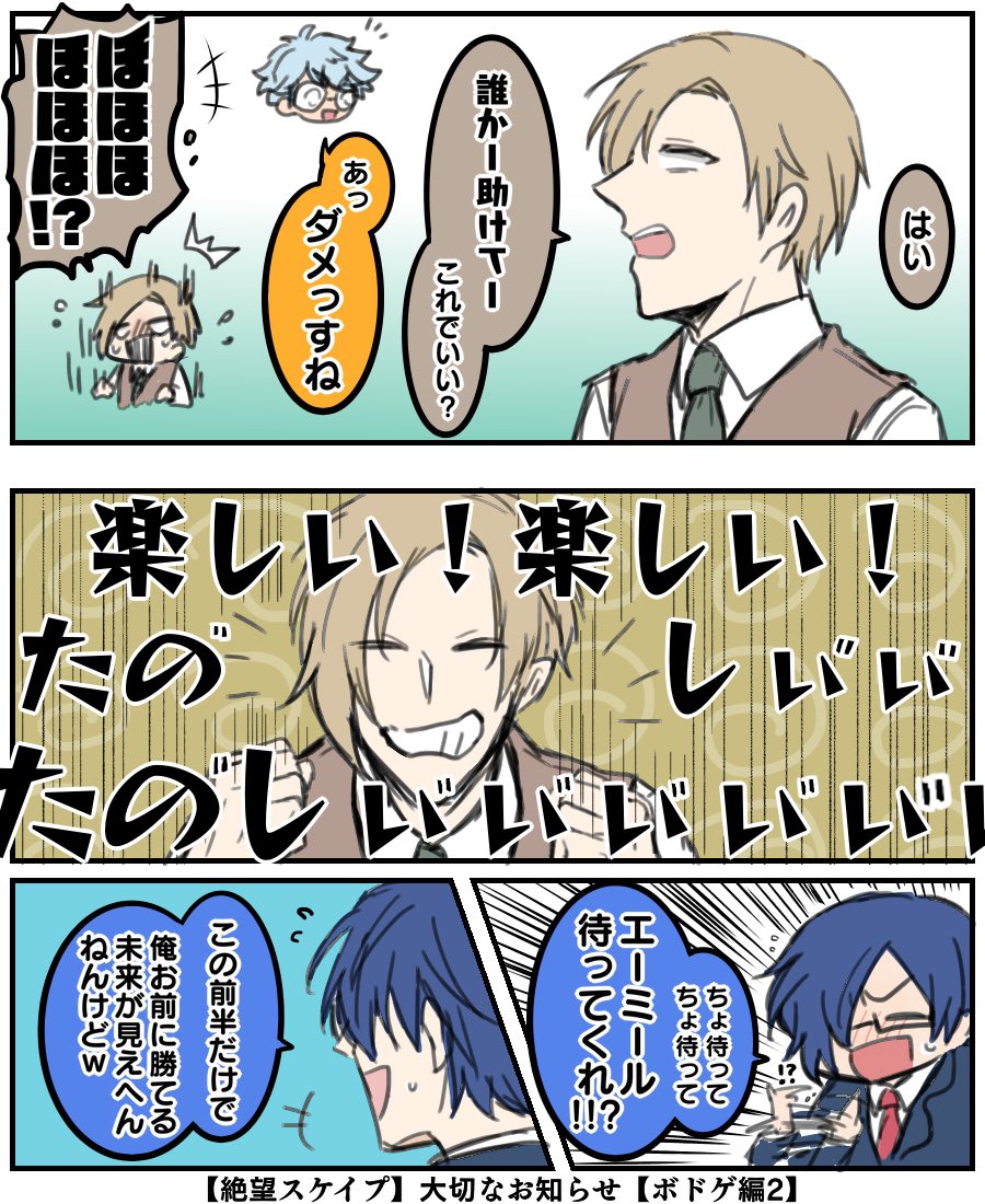 絶スケ今回もカオスな盛り上がりしていて凄かったな〜内ゲバ問題楽しそうでしたね! 楽しい楽しい楽しいタノシィー!! 最後の「…はい!!!(音割れ)」いっそ潔くて笑ってしまいましたわ