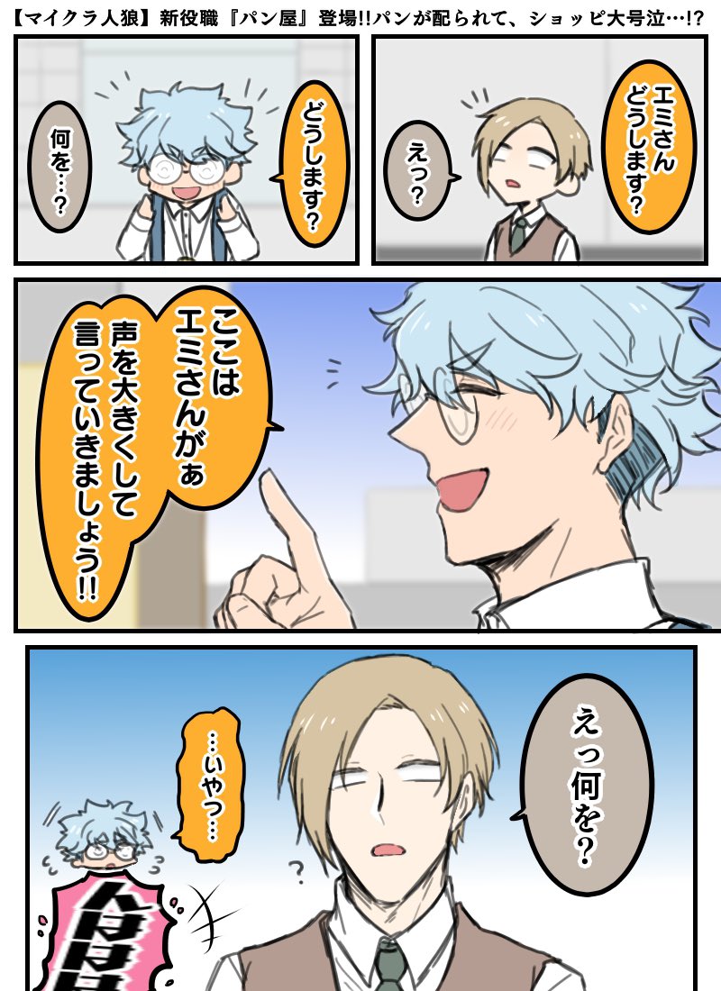 パンじんろ 真っ当な提案に疑問で返されて言葉に詰まるci君と、ネタかガチか分からないemさんの「何を?」が好きすぎました