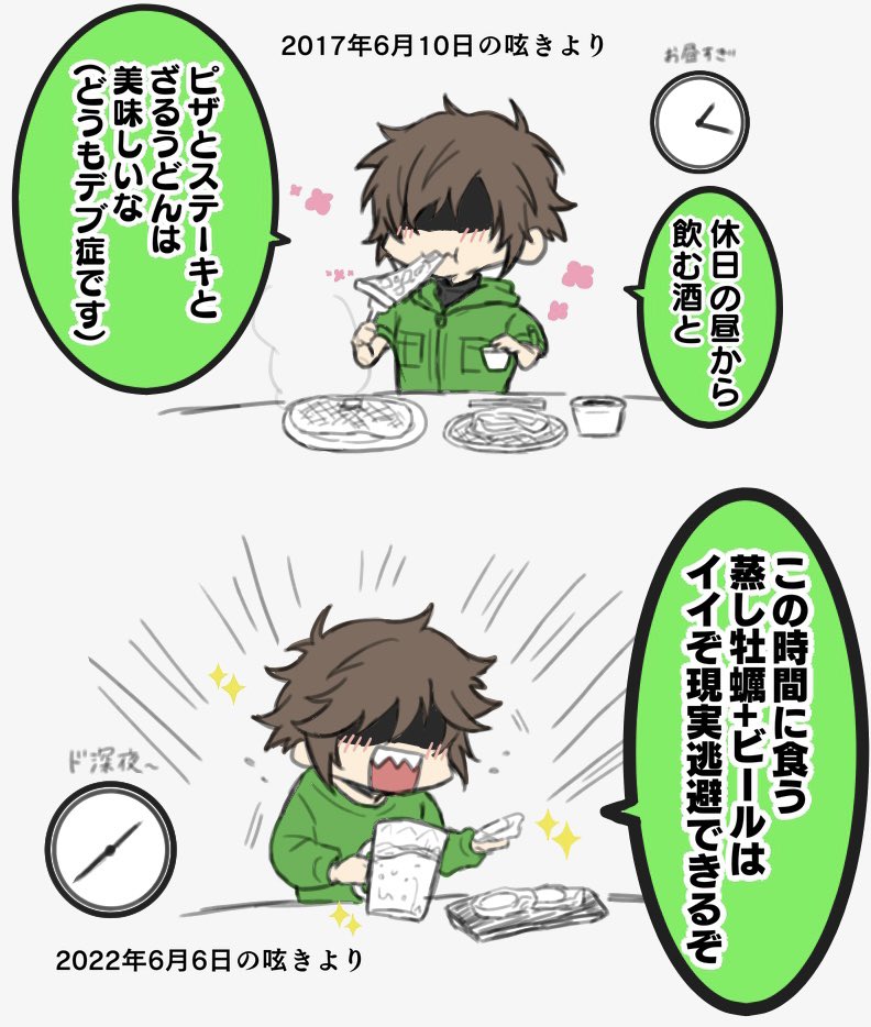 前回のREが旧つくのお2人で、お菓子の話をしていて懐かしかったので過去絵リメイク tn氏のプライドめいたものを無意識に傷つけるknさんが印象的