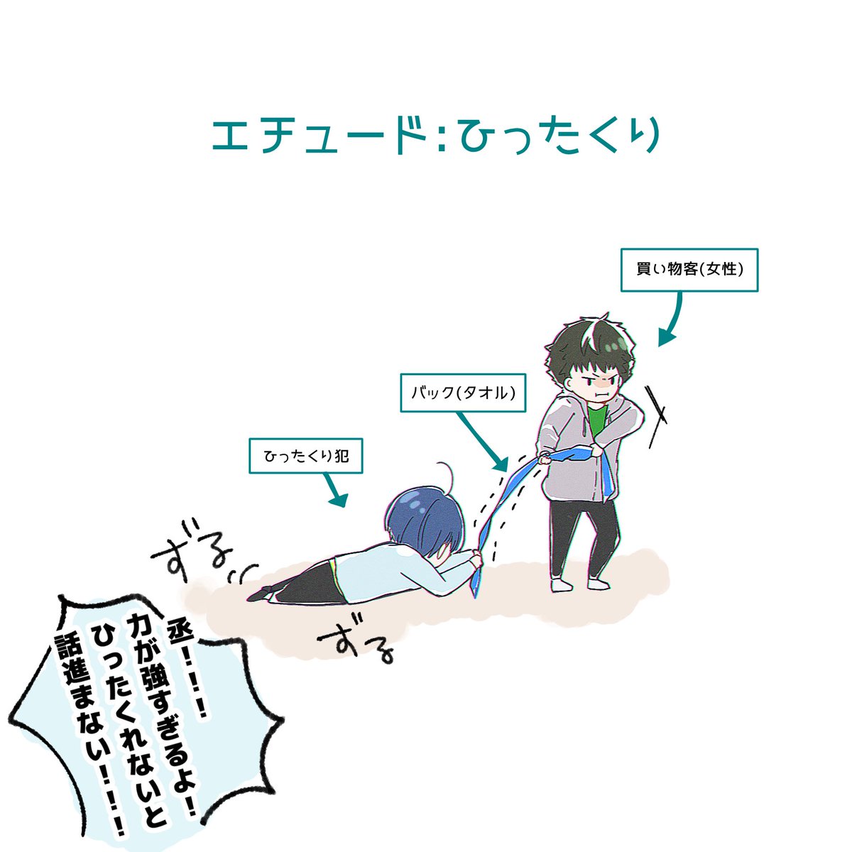 エーステ春単✿ エチュードのお題が「ひったくり」なのに、 力ずくで阻止する丞さんと、必死にしがみついてそのまま引きずられる紬さん。軽い💭
