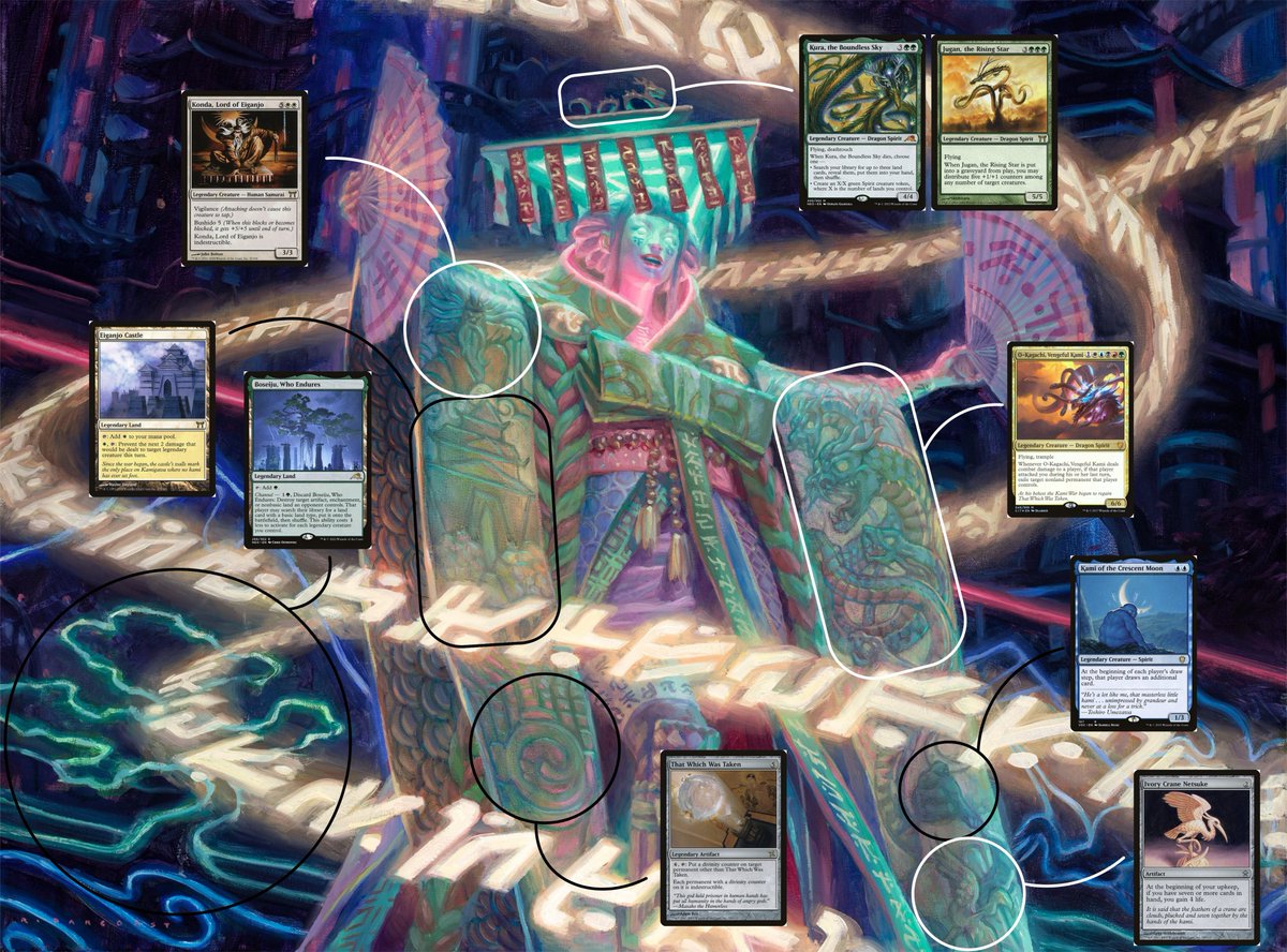 《生ける伝承、佐津樹》のアートには神河の歴代カードが描かれているよって投稿。