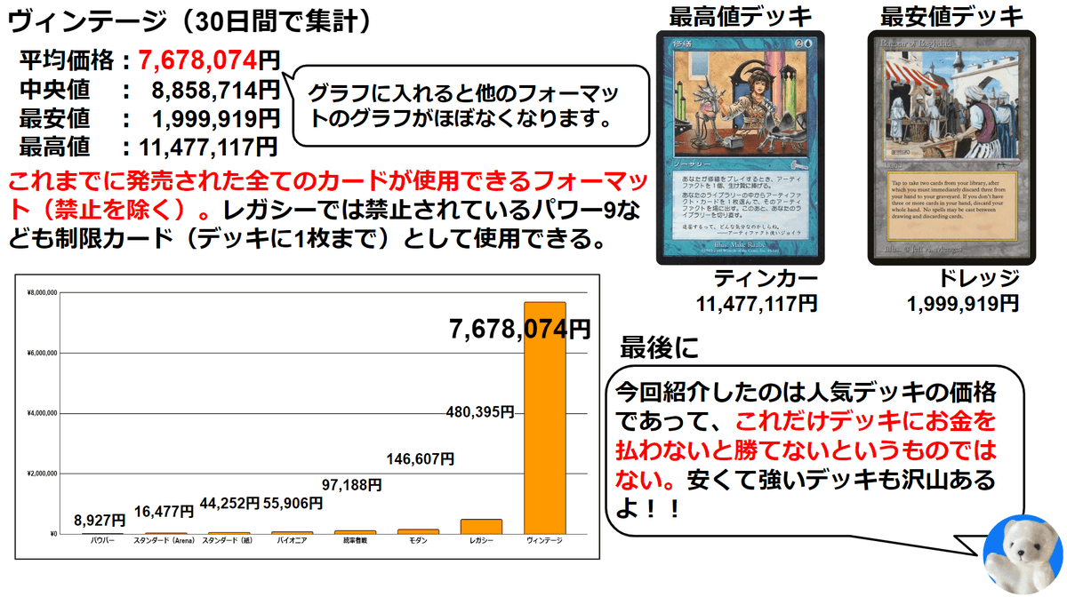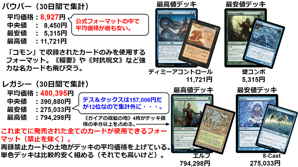 MTGのフォーマットごとの人気デッキの価格を調べたよ。 #MTG