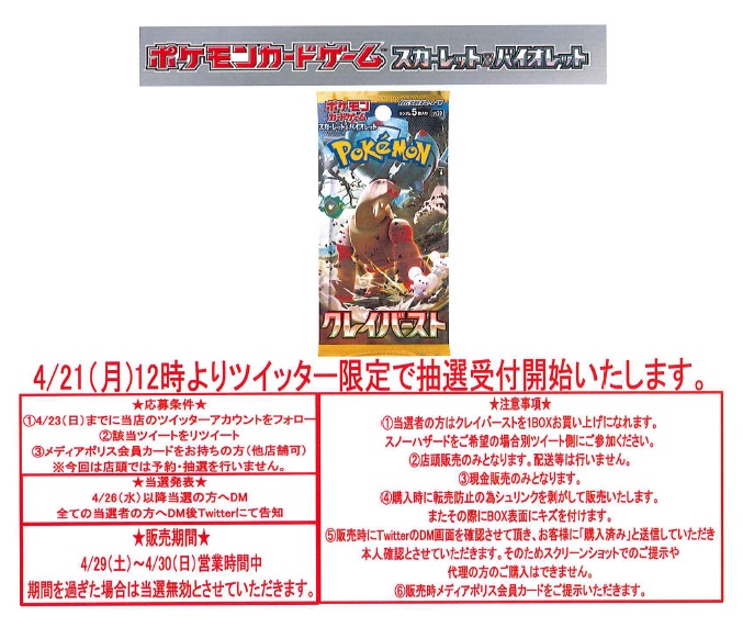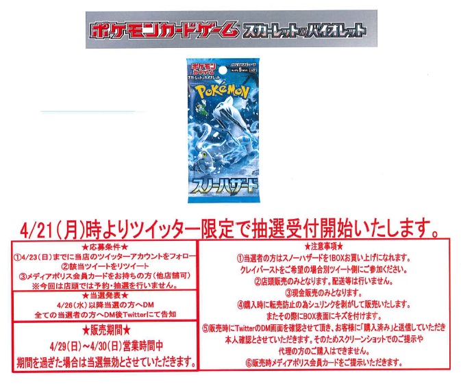 スノーハザード・クレイバーストの抽選販売を行います!