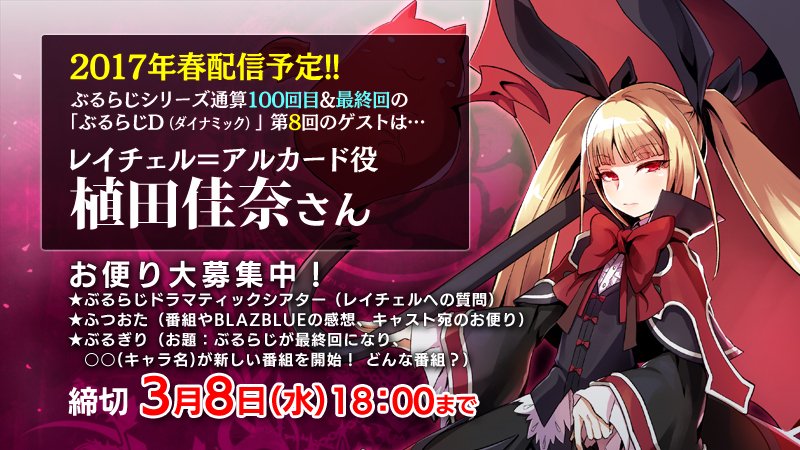 ブレイブルー公式WEBラジオ「ぶるらじD第8回 ~100の想いを越えて、また会う日までごきげんよう~」 nicovideo.jp/watch/14913913…