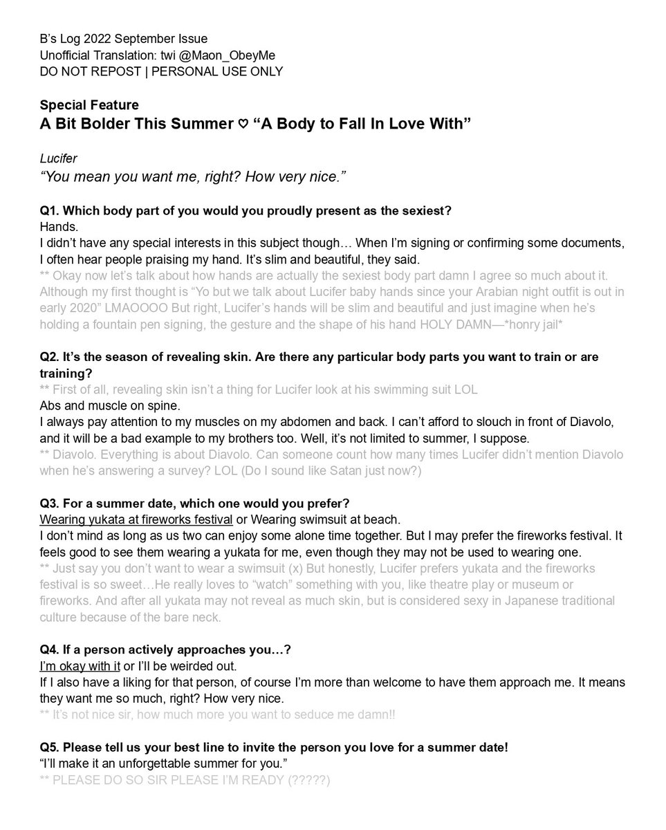 Translation of the #obeyme special scoop in B's Log to celebrate HDD2022!