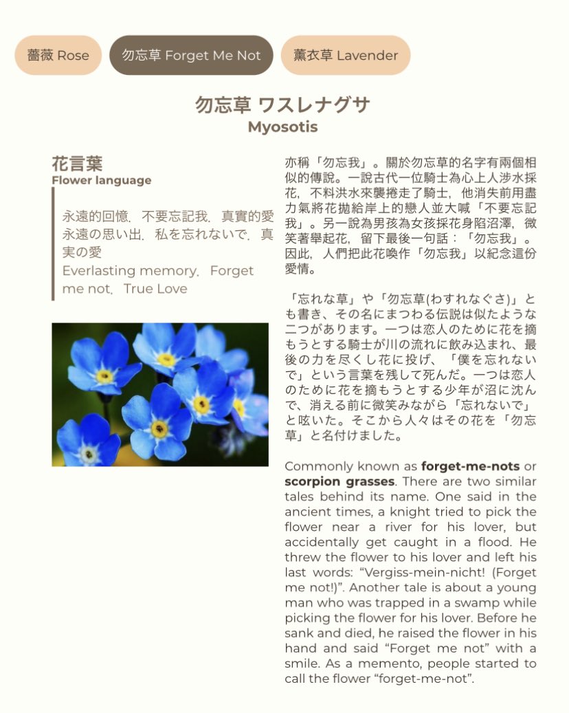 I tried to make a guess of the flowers drew and gathered the flower languages!