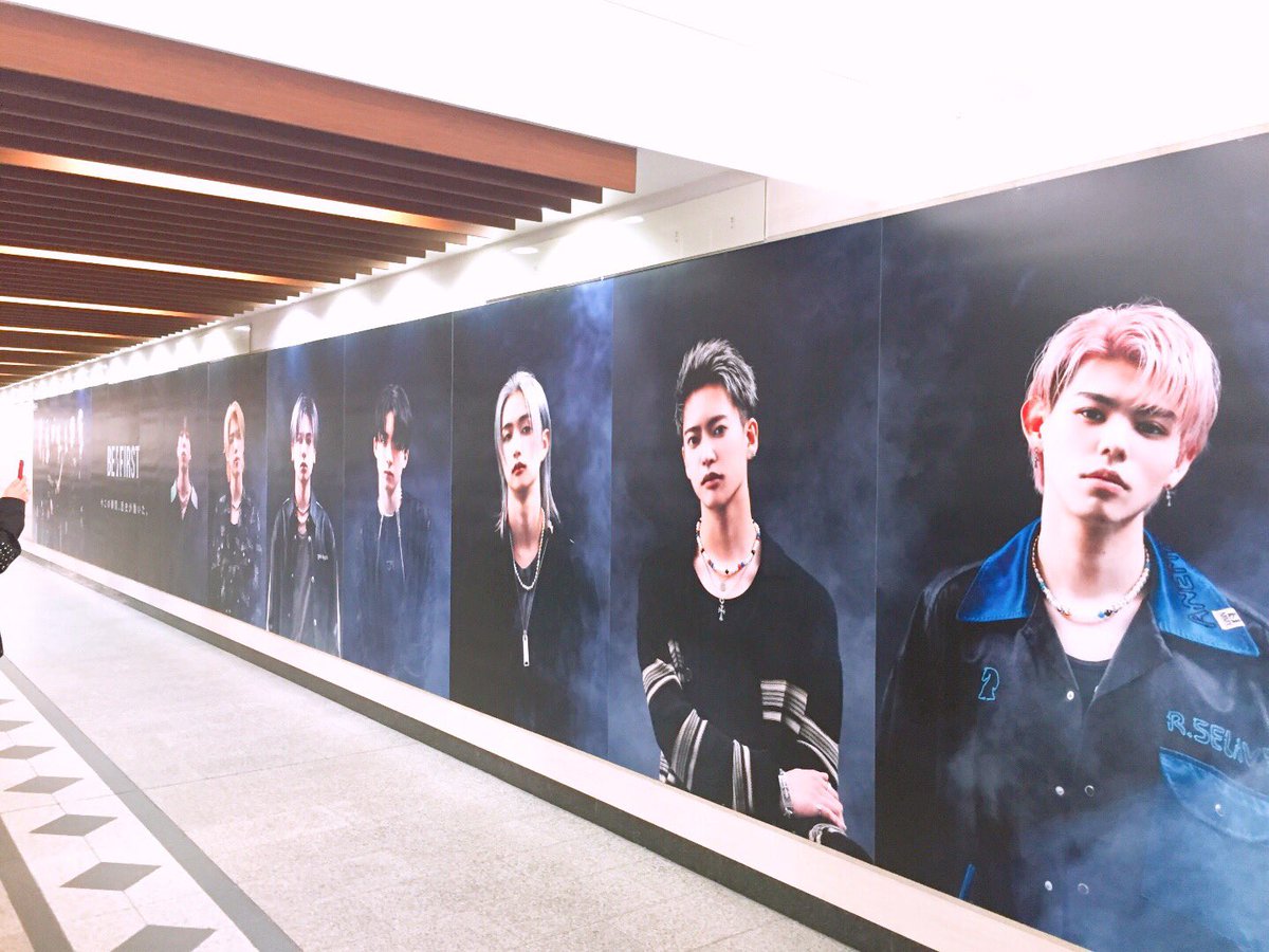 大阪梅田の阪急百貨店の近くの駅中に BE:FIRSTの巨大ポスター!!通りかかる人がみんな見てる!!ここの場所に巨大ポスターはすごいよ☺️写真撮りました!