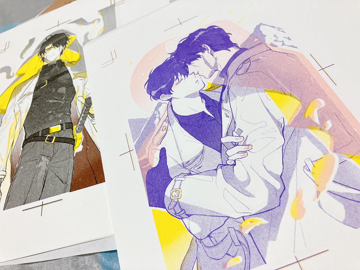 RISO印刷楽しすぎ 三色はやはりムズイね。色の位置とか濃度とかちゃんと考えないと