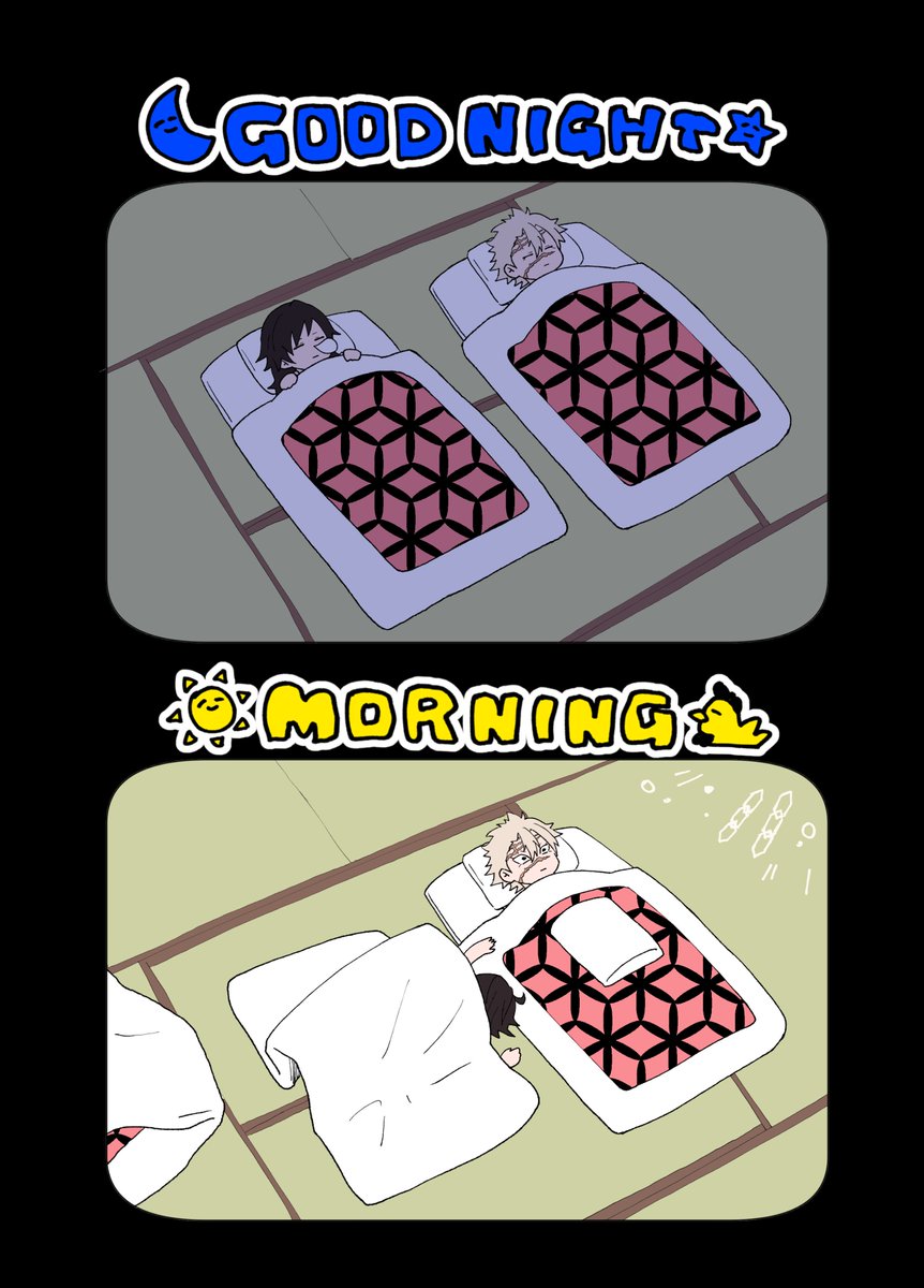 夜お布団に入った姿のまま目覚めるタイプの不死川と夜中ひとり大運動会するタイプの冨岡