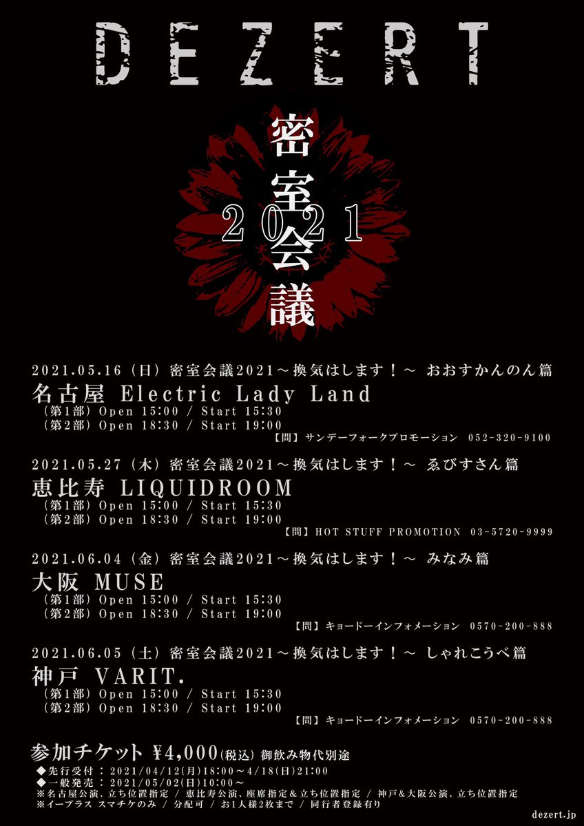改めまして来月から少しだけ密室系になります。相変わらず大変な状況ですがスタッフと共に万全な感染対策のもと実施させていただきます。チケット先行期間は今週末までになります。もちろんみーちゃんも密室系にさせます。安心してください。dezert.jp/news/dezert-%e…
