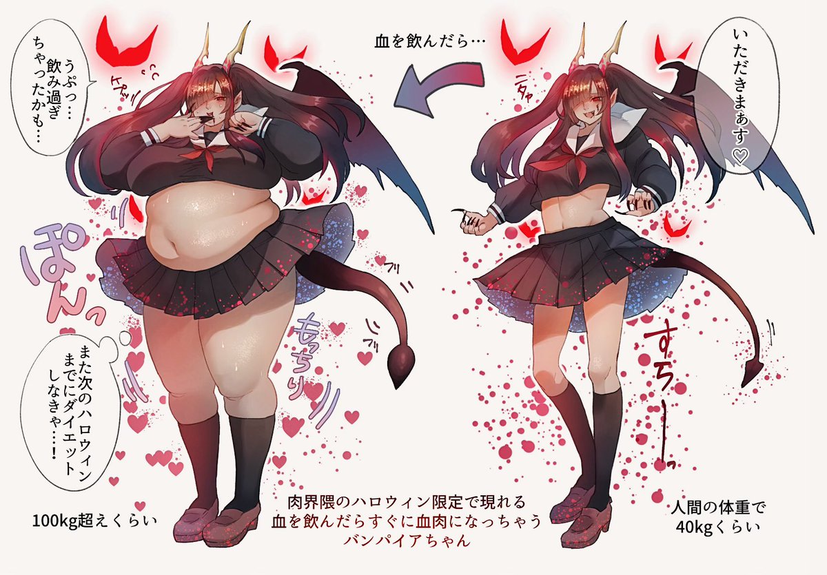 人間界に来てぽっちゃりしてきたサキュバスちゃん