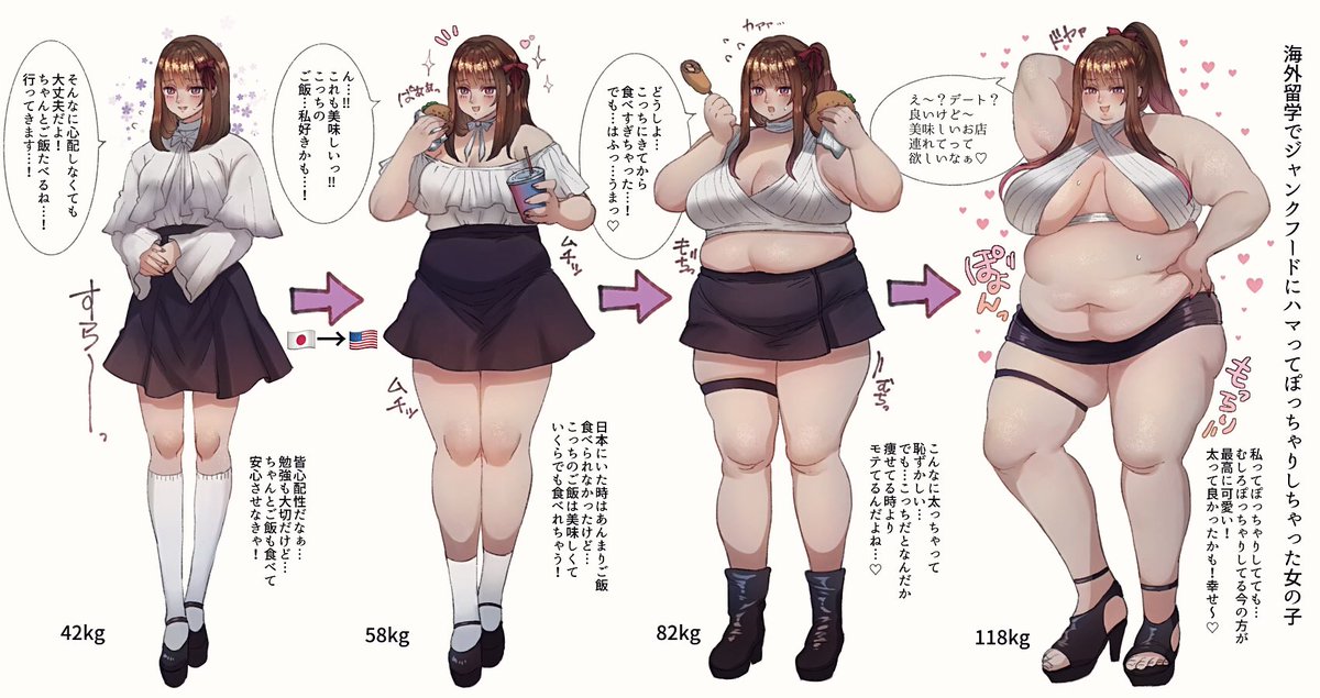 海外留学でジャンクフードにハマってぽっちゃりしちゃった女の子