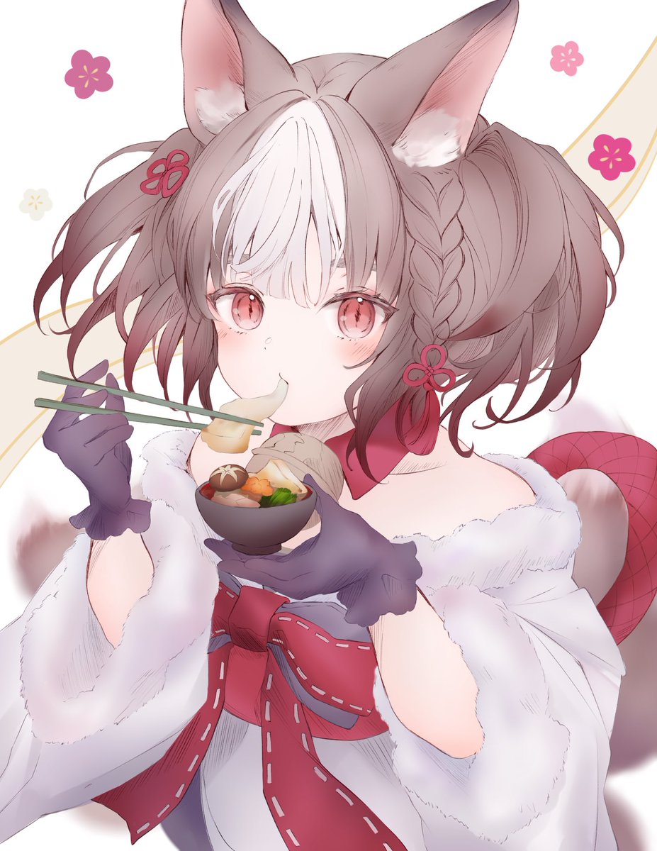 お正月にお雑煮を食べるセッカちゃん⛩ ❀.*・